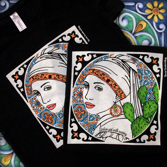 5. Maglietta dipinta a mano Ragazza siciliana orecchino