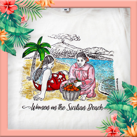 Donne spiaggia siciliana Maglietta dipinta a mano