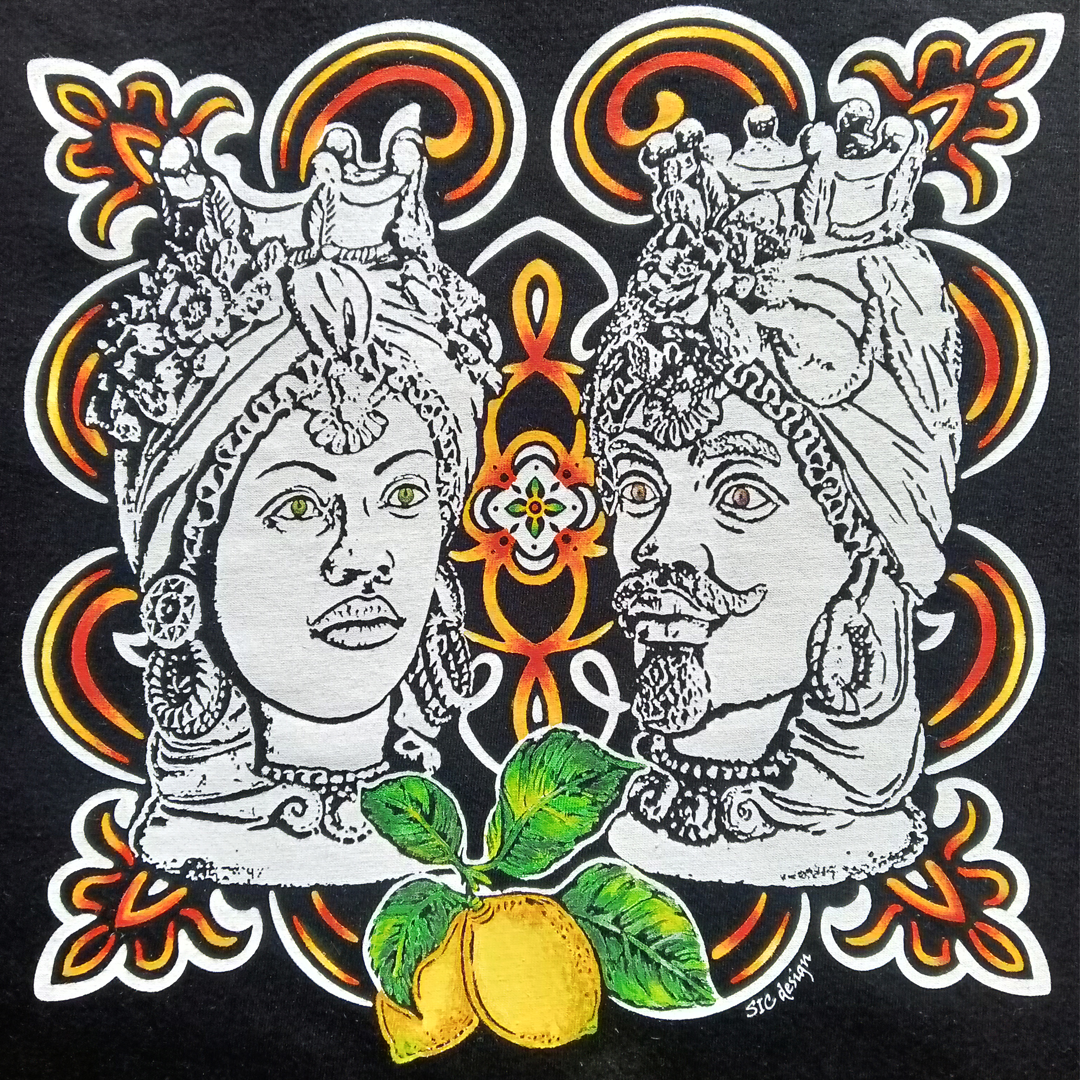 Un’icona senza tempo della tradizione siciliana prende vita in questa maglietta artigianale, ispirata alle celebri Teste di Moro, simbolo di amore, passione e identità mediterranea.