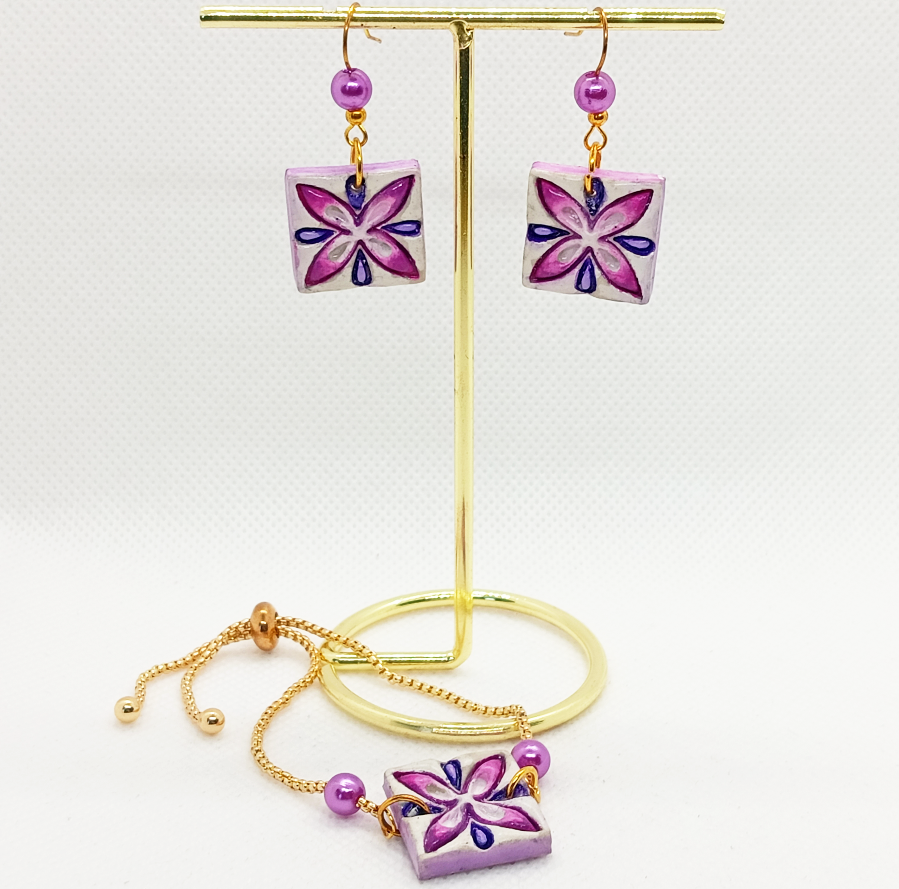 Dona un tocco di eleganza artigianale al tuo stile con questo set coordinato di orecchini e bracciale dipinti a mano.🎨